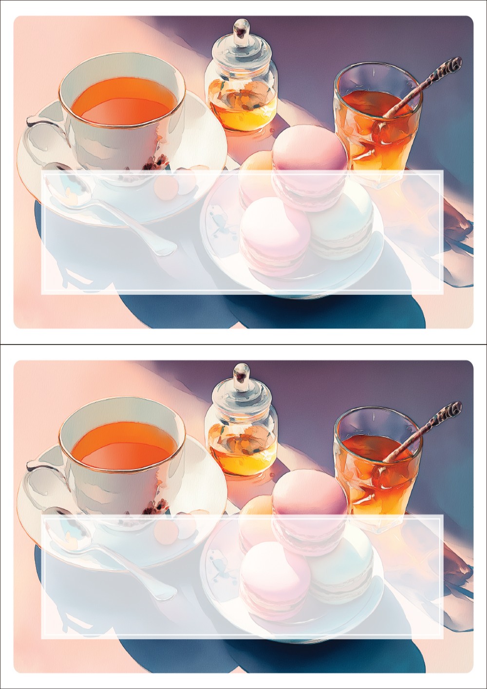 디자인된 A4 택 출력용 비점착 라벨, 규격코드: TLS0021, 디자인코드: DA1430(브런치 타임), 210 x 148.5 (mm)