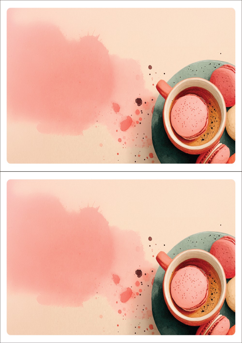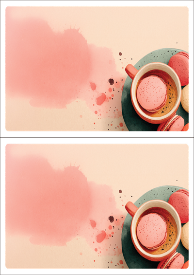 디자인된 A4 택 출력용 비점착 라벨, 규격코드: TLS0021, 디자인코드: DA1444(마카롱 휴식타임), 210 x 148.5 (mm)