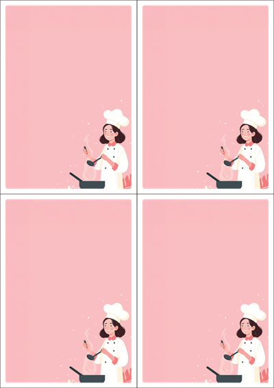 디자인된 A4 택 출력용 비점착 라벨, 규격코드: TLS0041, 디자인코드: DA1434(요리교실 오픈했어요), 105 x 148.5 (mm)