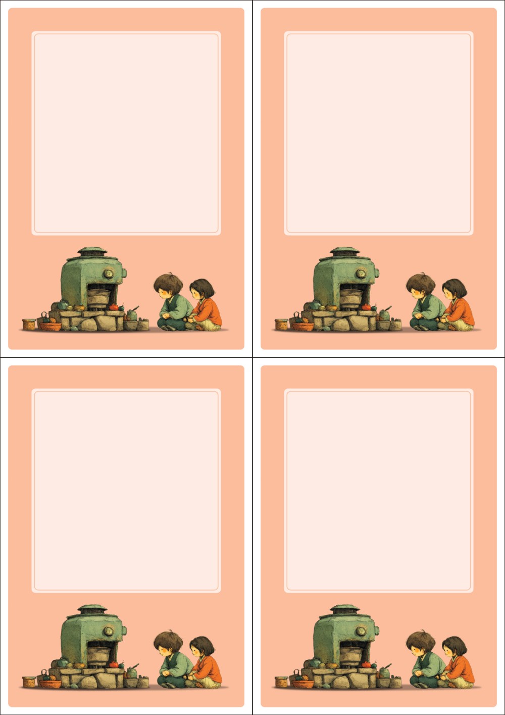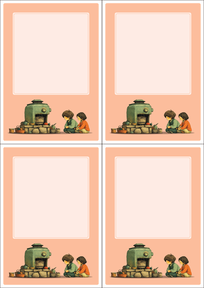 디자인된 A4 택 출력용 비점착 라벨, 규격코드: TLS0041, 디자인코드: DA1438(동화 - 따뜻한 이야기), 105 x 148.5 (mm)