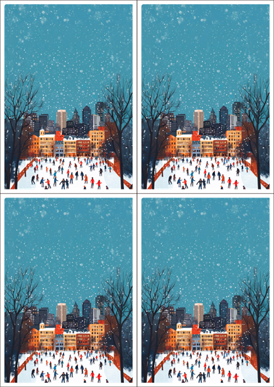 디자인된 A4 택 출력용 비점착 라벨, 규격코드: TLS0041, 디자인코드: DA1471(겨울날의 즐거움), 105 x 148.5 (mm)