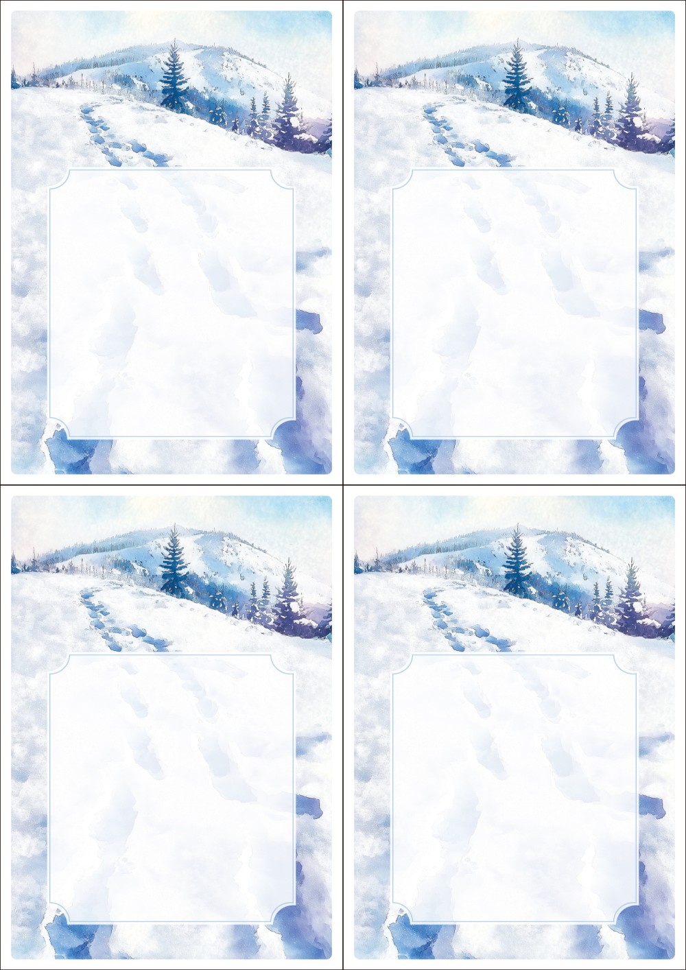 디자인된 A4 택 출력용 비점착 라벨, 규격코드: TLS0041, 디자인코드: DA1491(겨울산에서 보내는 편지 2), 105 x 148.5 (mm)