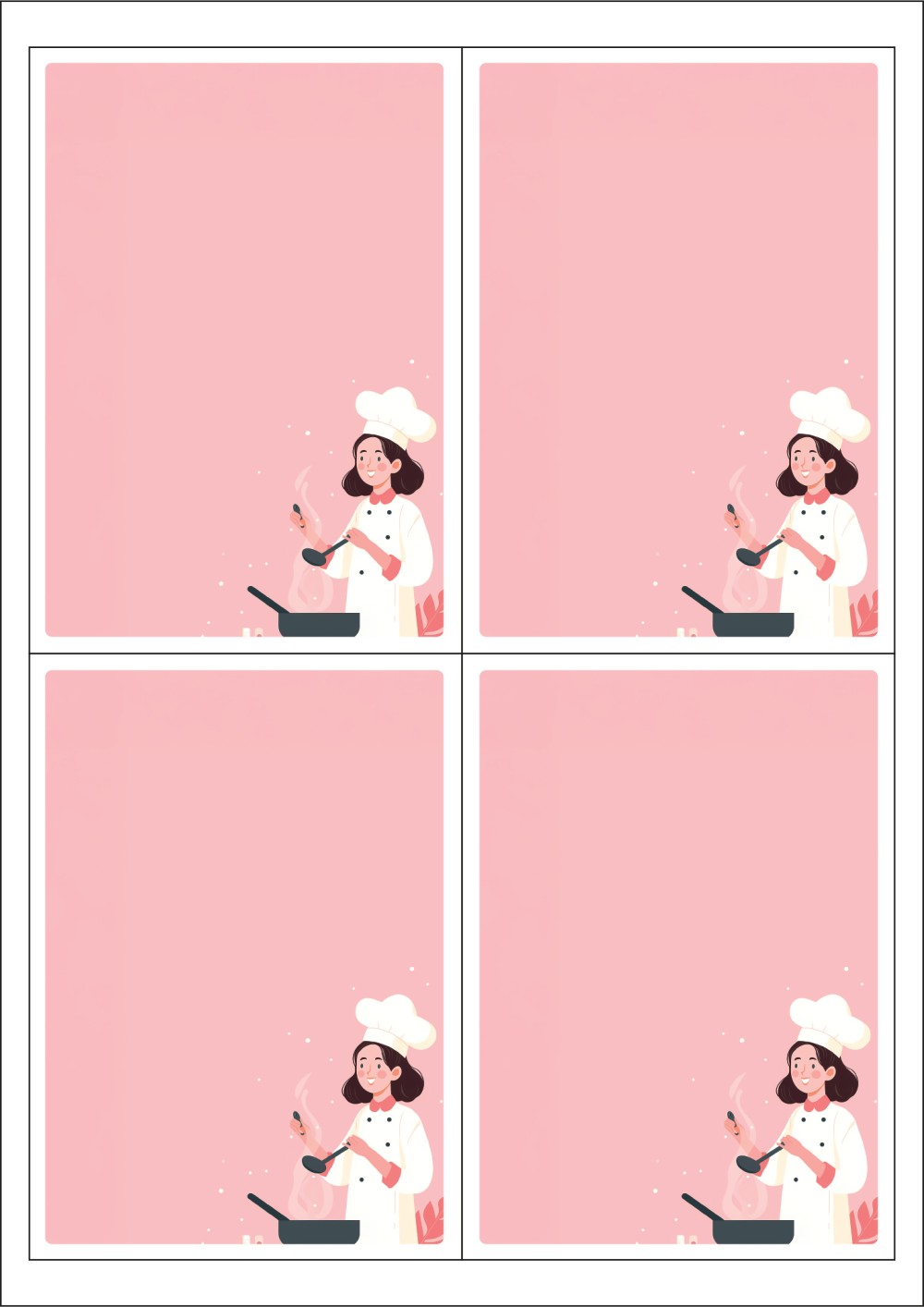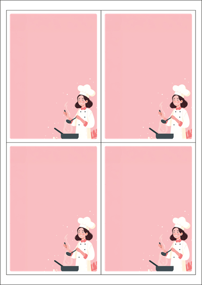 디자인된 A4 택 출력용 비점착 라벨, 규격코드: TLS0042, 디자인코드: DA1434(요리교실 오픈했어요), 98.5 x 138 (mm)