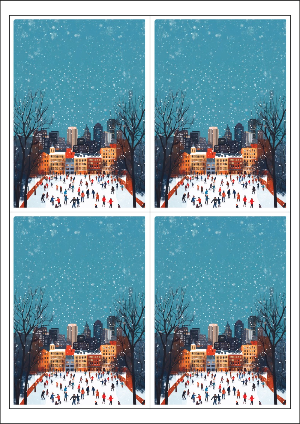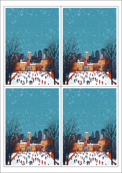 디자인된 A4 택 출력용 비점착 라벨, 규격코드: TLS0042, 디자인코드: DA1471(겨울날의 즐거움), 98.5 x 138 (mm)