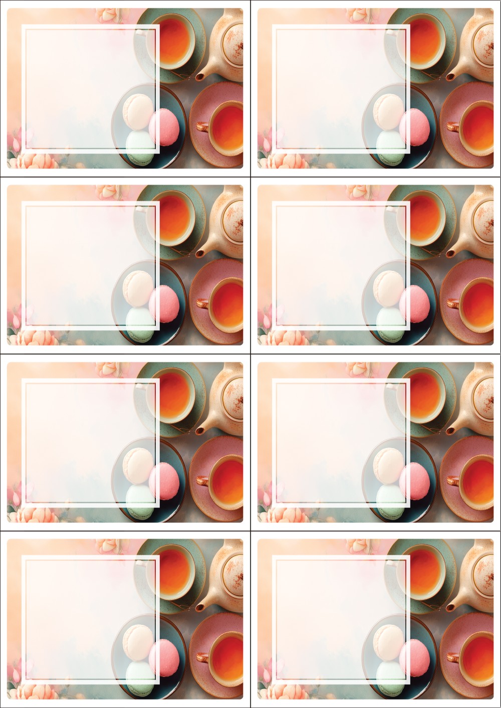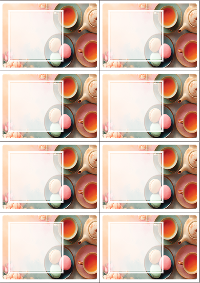 디자인된 A4 택 출력용 비점착 라벨, 규격코드: TLS0081, 디자인코드: DA1431(향긋한 아침에), 105 x 74.25 (mm)