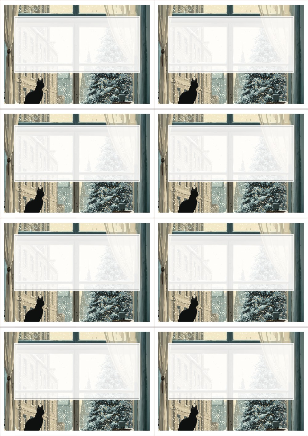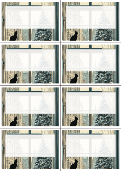 디자인된 A4 택 출력용 비점착 라벨, 규격코드: TLS0081, 디자인코드: DA1494(오후엔 눈 그리고, 고양이), 105 x 74.25 (mm)