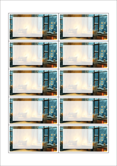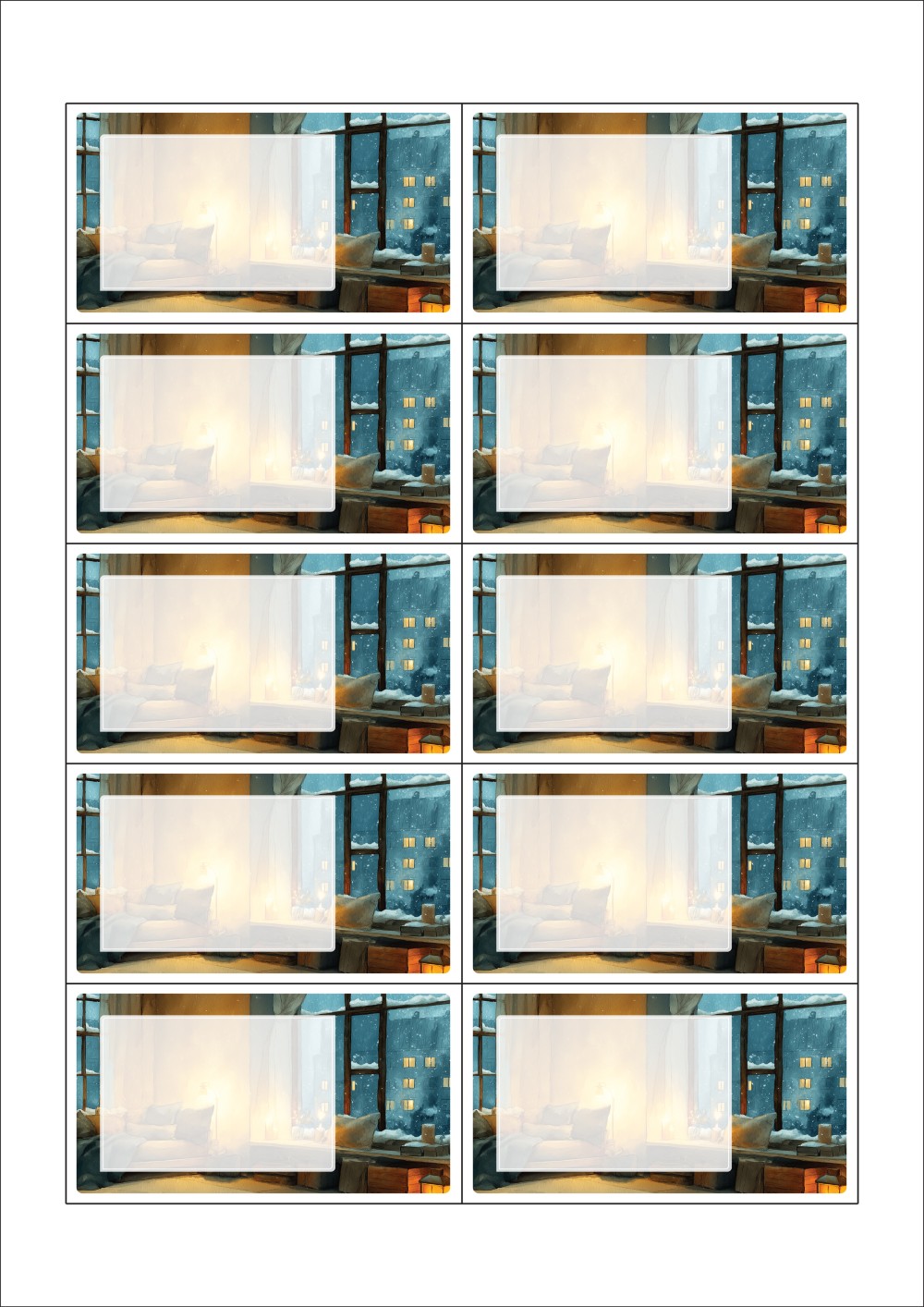 디자인된 A4 택 출력용 비점착 라벨, 규격코드: TLS0101, 디자인코드: DA1461(아늑한 실내, 겨울의 창가에서), 90 x 50 (mm)