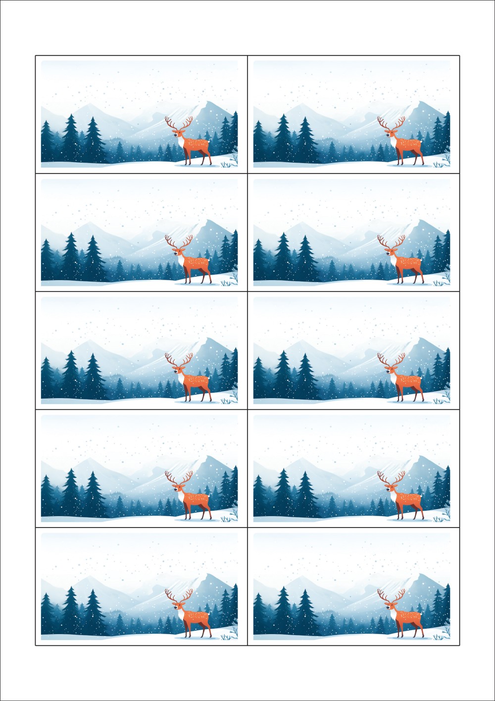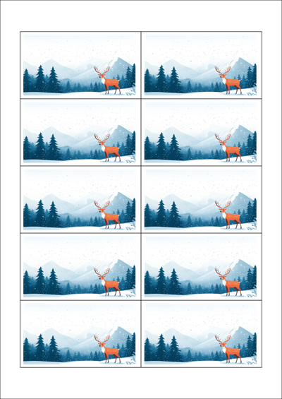 디자인된 A4 택 출력용 비점착 라벨, 규격코드: TLS0101, 디자인코드: DA1472(고요한 겨울숲), 90 x 50 (mm)