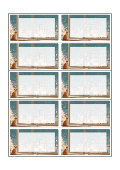 디자인된 A4 택 출력용 비점착 라벨, 규격코드: TLS0101, 디자인코드: DA1493(따뜻한 방안이 좋다냥~), 90 x 50 (mm)
