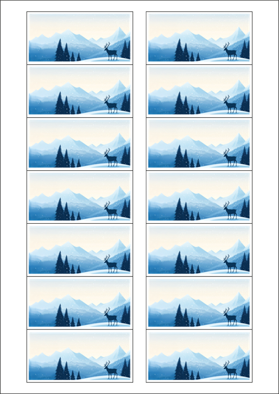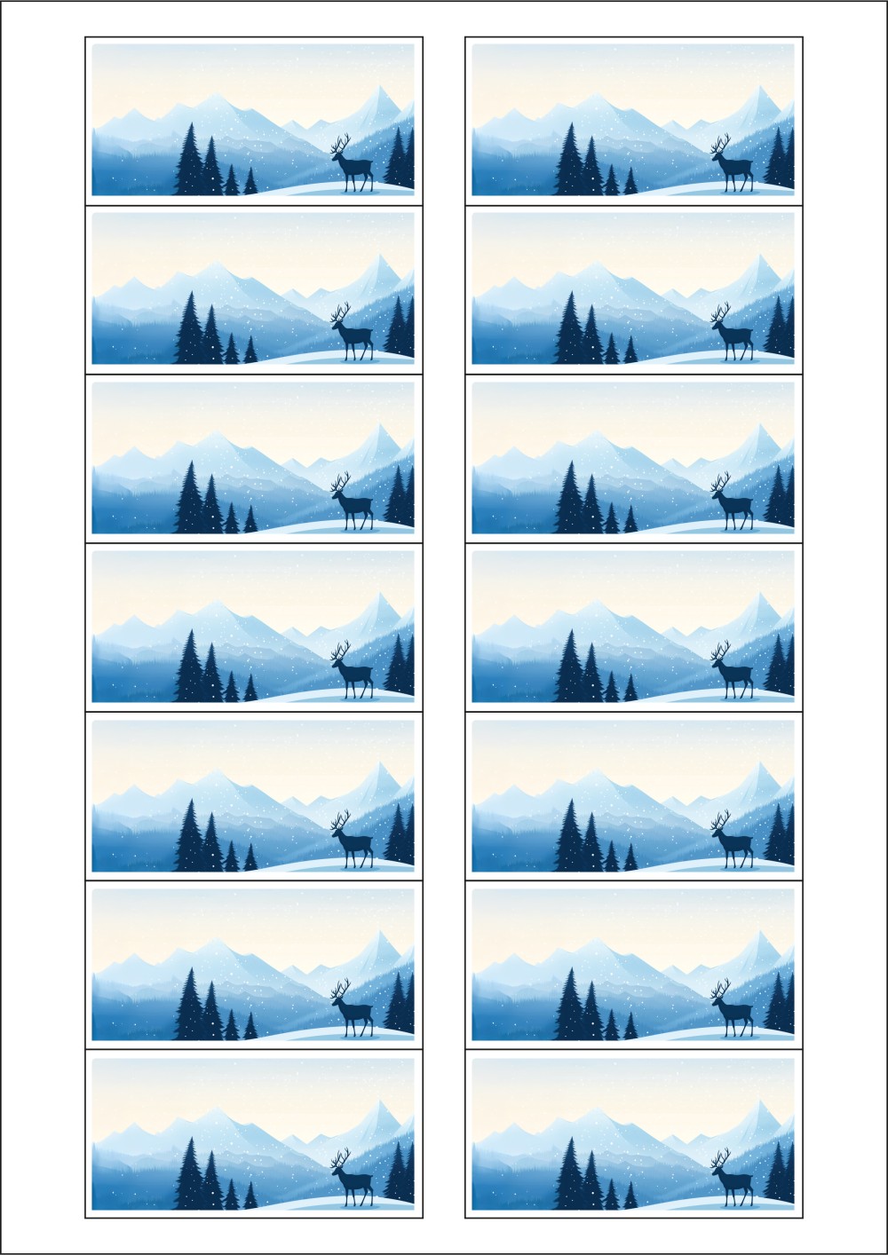 디자인된 A4 택 출력용 비점착 라벨, 규격코드: TLS0141, 디자인코드: DA1473(새벽의 겨울숲, 힐링의 시간), 80 x 40 (mm)
