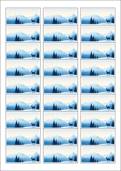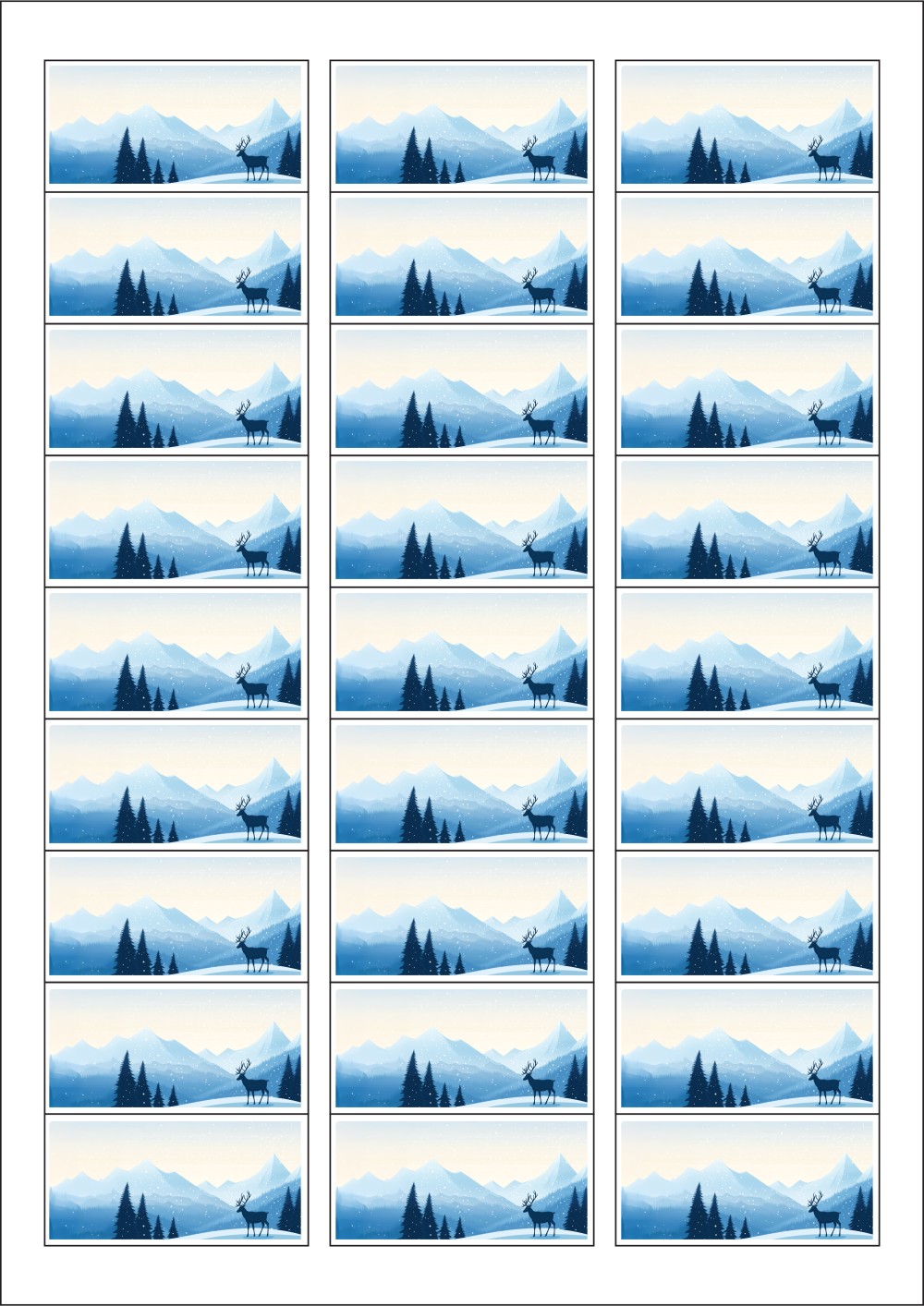 디자인된 A4 택 출력용 비점착 라벨, 규격코드: TLS0271, 디자인코드: DA1473(새벽의 겨울숲, 힐링의 시간), 60 x 30 (mm)